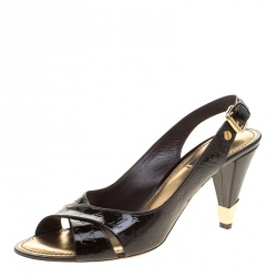 Louis Vuitton Dark Burgundy Patent Leather Open Toe Slingback Sandals Size 40