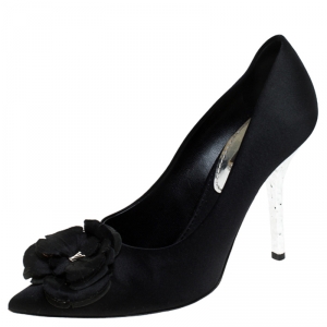 Louis Vuitton Black Satin Flower Embellished Pointed Toe Pumps Size 37