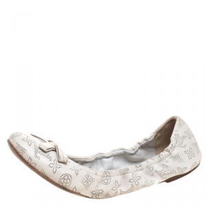 Louis Vuitton Off White Monogram Mahina Leather Bow Scrunch Ballet Flats Size 38.5