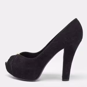 Louis Vuitton Size 39.5 Black Suede Butterfly Peep Toe Wedge Pumps
