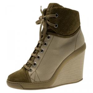 Louis Vuitton Black Canvas and Monogram Suede Batignolles Wedge Sneakers Size 37
