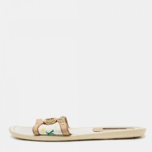 Louis Vuitton Blue/Beige Monogram Canvas and Leather Bow Grenadine Platform Slide Sandals Size 40.5