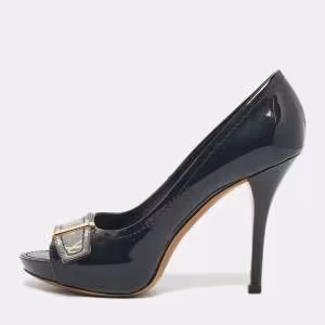 Louis Vuitton Brown Coated Canvas and Patent Leather Cheri Pumps Size 39.5