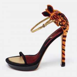 Louis Vuitton Size 41 Black Leather, Python Leather and Suede Sandals
