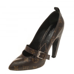 Louis Vuitton Brown Monogram Coated Canvas And Leather Mary Jane Pumps Size 36