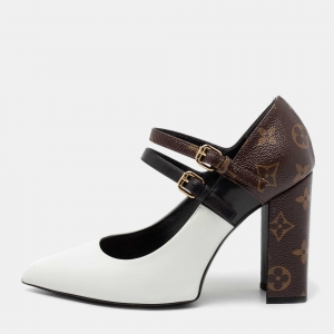 Louis Vuitton White/Brown Monogram Canvas and Leather Mary Jane Pumps Size 37