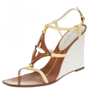 Louis Vuitton Beige And Blue Vachetta Leather Divine Trunks And Bags Espadrille Wedge Sandals Size 38