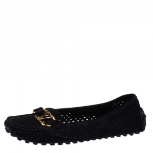 Louis Vuitton Black Monogram Empreinte Leather Gloria Flat Loafers Size 36.5