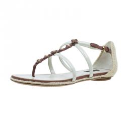 Louis Vuitton Gold Leather Beaded Sandals Size 38.5
