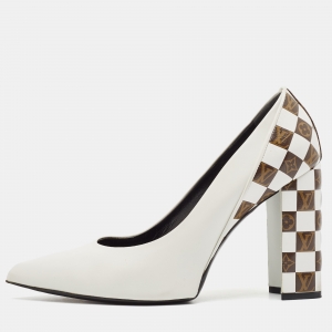 Louis Vuitton Brown Monogram Canvas And Patent Leather Peep Toe Pumps Size 38