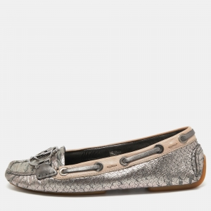 Dior Gold/Brown Python Embossed Leather CD Boatstitched Loafers Size 36.5
