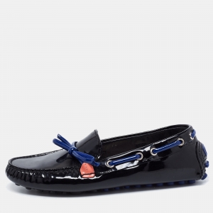 Dior Navy Blue Patent Leather Bow Loafers Size 36