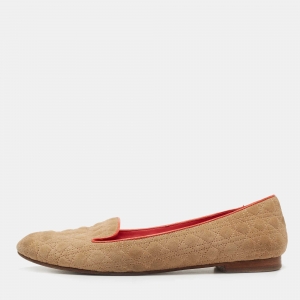 Dior Beige Patent Leather Logo Embellished Slip On Loafers Size 36.5