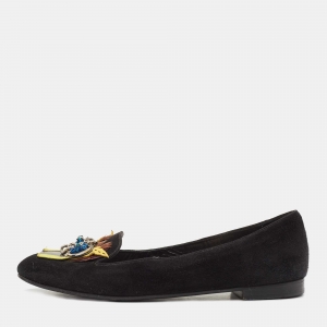 Dior Black Leather Floral Embellished Leather Loafers Size 39