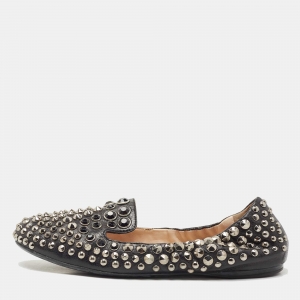 Prada Sport Black Leather Crystal Studded Slip On Loafers Size 37.5