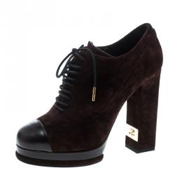 Chanel Black Suede and Patent Leather Cap Toe CC Pearl Ankle Boots Size 37.5
