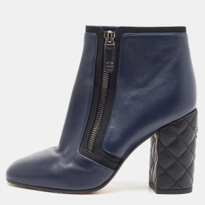 Chanel Black/Blue Tweed and Patent Leather Chain Embellished Boots Size 37