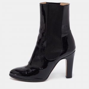 Chanel Black Tweed And Patent Leather CC Cap Toe Ankle Booties Size 41
