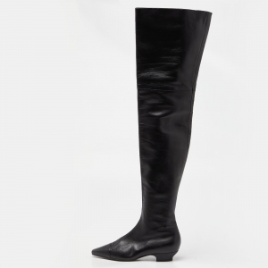 Chanel Black Leather CC Knee Length Boots Size 39.5