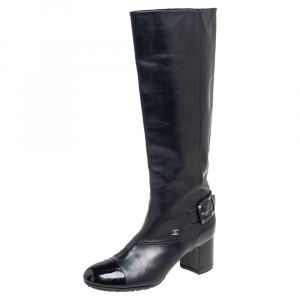 Chanel Black Leather CC Knee Length Boots Size 39.5
