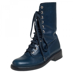 Chanel Black/Navy Blue Leather CC Knee Cap Toe Length Boots Size 35.5