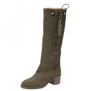 Chanel Black Suede Wedge Knee Length Boots Size 39.5