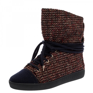 Chanel Blue and Black Moscow Metiers d'Art Leather and Shearling Boots Size 37.5