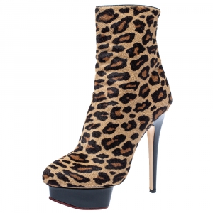 Charlotte Olympia Leopard Pony Hair Lucinda Platform Ankle Boots Size 38