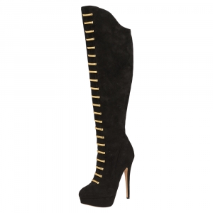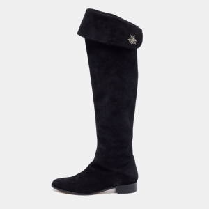 Charlotte Olympia Black Suede Knee Length Boots Size 37