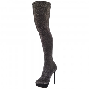 Charlotte Olympia Glitter Stretch Fabric Stocking Thigh High Boots Size 38