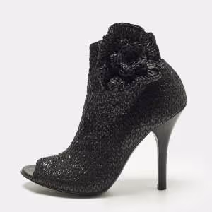 Dolce & Gabbana Black Patent Leather Peep Toe Booties Size 36