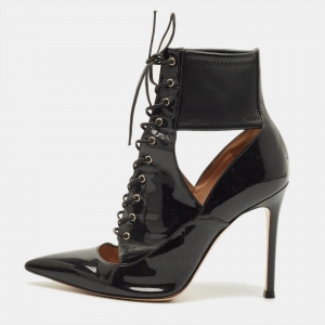 Gianvito Rossi Black Patent and Leather Lace-Up Ankle Booties Size 37.5