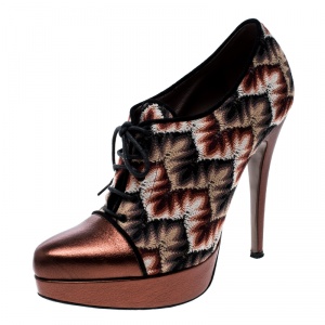 Missoni Multicolor Patterned Knit and Metallic Leather Platform Lace Up Ankle Booties Size 37.5
