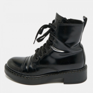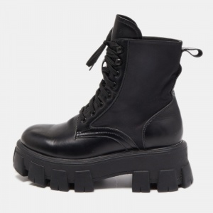 Prada Black Leather And Fur Ankle Length Boots Size 36