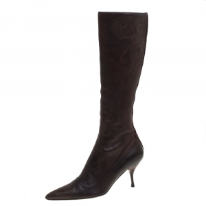 Prada Brown Suede Heel Knee Length Boots Size 40