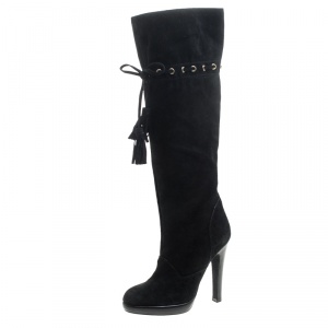 Saint Laurent Black Leather Tribute Knee Length Boots Size 36