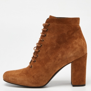 Saint Laurent Brown Leather Platform Ankle Boots Size 36.5
