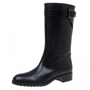 Tod's Black Leather and Suede Fibbie Mid Calf Biker Boots Size 37