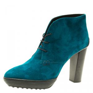 Tod's Grey Suede Leather Platform Ankle Booties Size 39