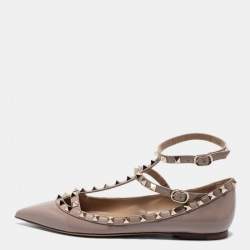 Valentino Dusty Beige Patent Leather Rockstud Ankle Strap Ballet Flats Size 38