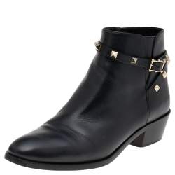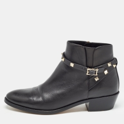 Valentino Black Leather Rockstud Ankle Boots Size 40