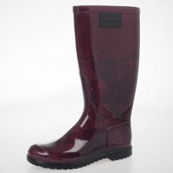 Valentino Beige/Red Iconographe Canvas VLogo Knee Length Boots Size 39