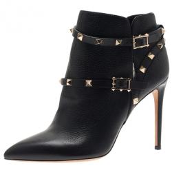 Valentino Black Leather Rockstud Ankle Booties Size 36.5