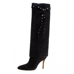 Valentino Black Suede Rockstud Wedge Boots Size 38.5