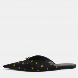 Balenciaga Black Croc Embossed Leather Cosy BB Flat Mules Size 38