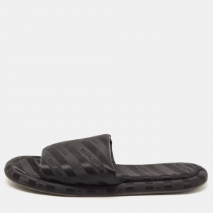 Balenciaga Black Rubber Logo Embossed Flat Slides Size 39