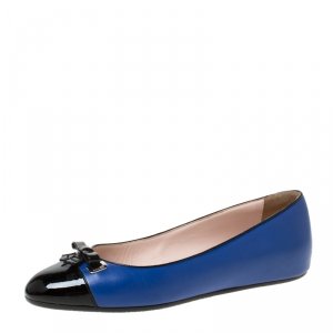 Bally Blue/Black Leather Bow Ballet Flats Size 37.5