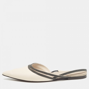Brunello Cucinelli Cream Leather Embellished Slingback Flats 41