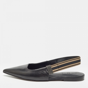 Brunello Cucinelli Black Leather Slingback Flats Size 37
