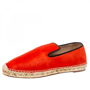 Celine Orange Calf hair Slip On Espadrille Loafer Flats Size 41